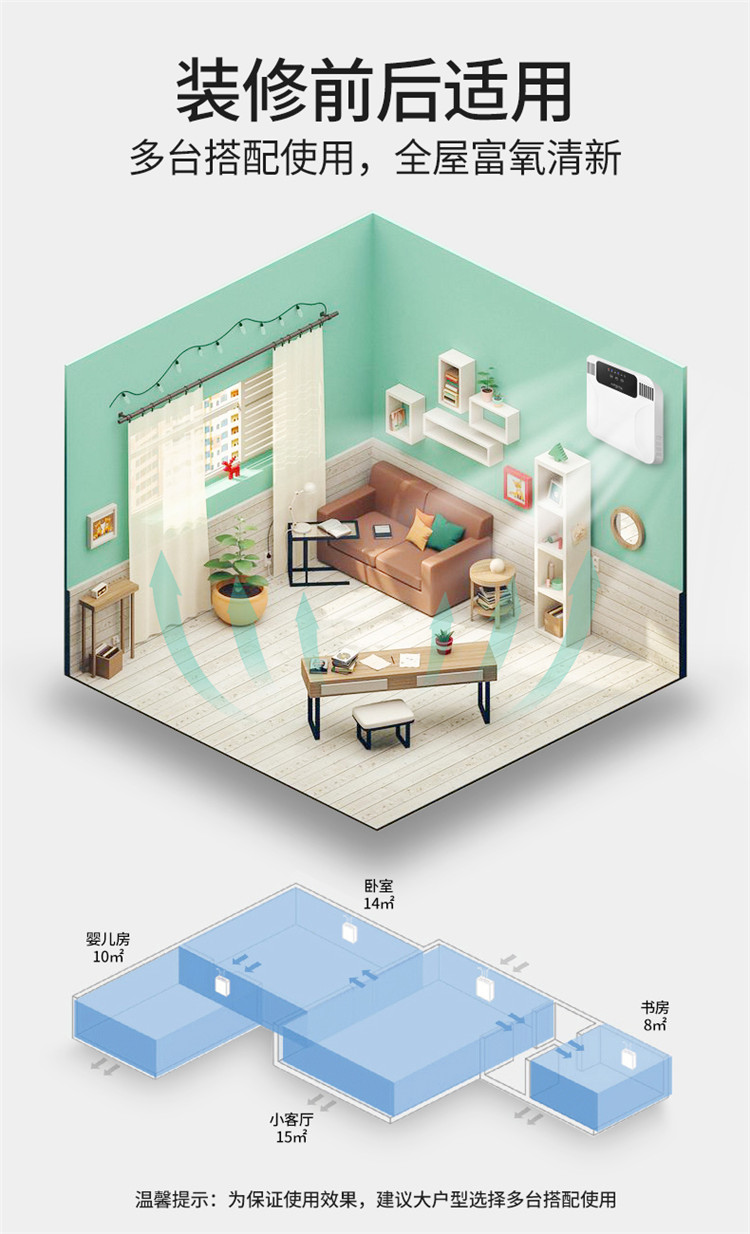 5、手機APP智能控制,液晶顯示空氣質量,PM2.5濃度、二氧化碳顯示
